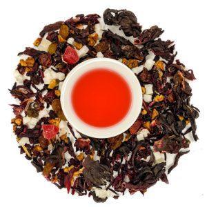 Ароматный нечайный чай с яркими хвойными и фруктово-ягодными нотами, очень похожий на хвойный сбитень. Купаж листьев гибискуса, корицы, гвоздики, цедры