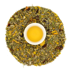 Бодрящий купаж с травяным характером. Этот оригинальный микс создан на основе крупнолистового тёмного пуэра с добавлением листьев и соцветий конопляного