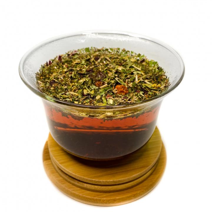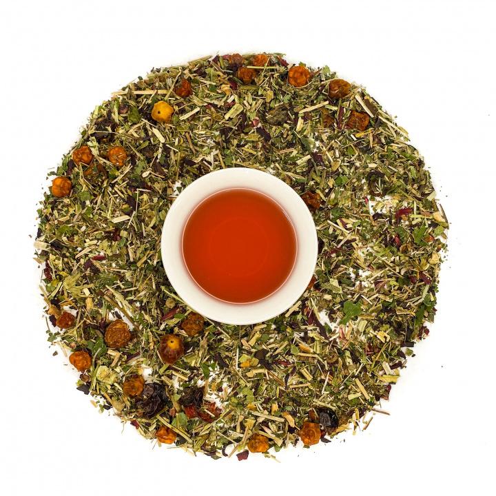 Крапива, липа, шиповник, душица, зверобой, рябина, лист смородины, гибискус. Без ароматизаторов.