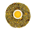 Купаж включает мяту, чабрец, ромашку, фенхель, лаванду, календулу, шиповник и душицу, создавая натуральный напиток с ярким травяным ароматом и мягким вкусом.