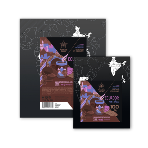 Горький шоколад 100% из Эквадора. Вкусовой профиль сочетает цветочные ноты с оттенками зелёного винограда и вишни. Умеренная кислинка делает вкус